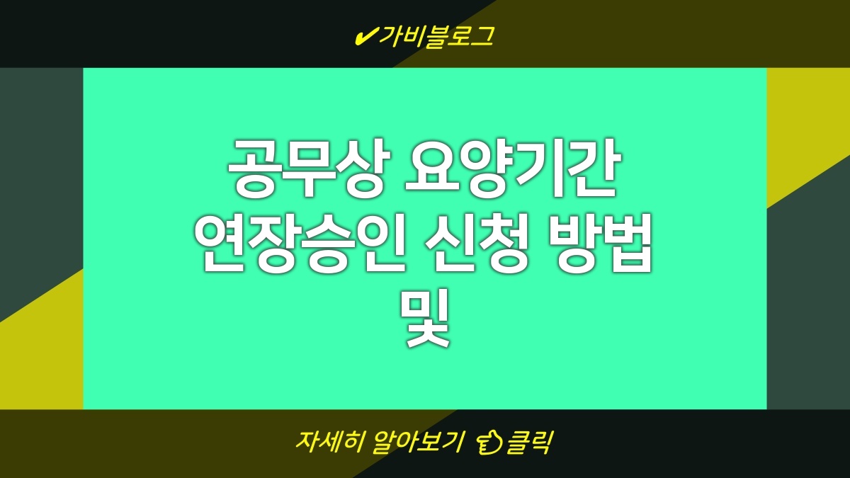 신청 절차는 크게 몇 가지 단계로 나뉘어져 있어. 먼저, 요양이 필요한 사유와 기간을 명확하게 정리해 두는 게 중요해. 그런 다음 관련 서류를 준비하고, 이를 담당 부서에 제출하는 거야. 이 후 승인 여부는 일정 기간 내에 통보되니, 결과를 기다려야 해. 이 과정에서 서류 누락이나 잘못된 정보는 승인 지연의 원인이 될 수 있어. 따라서 각 단계를 신중하게 살펴봐야 해.요양기간 연장을 위해서는 사유를 명확하게 써야 해.