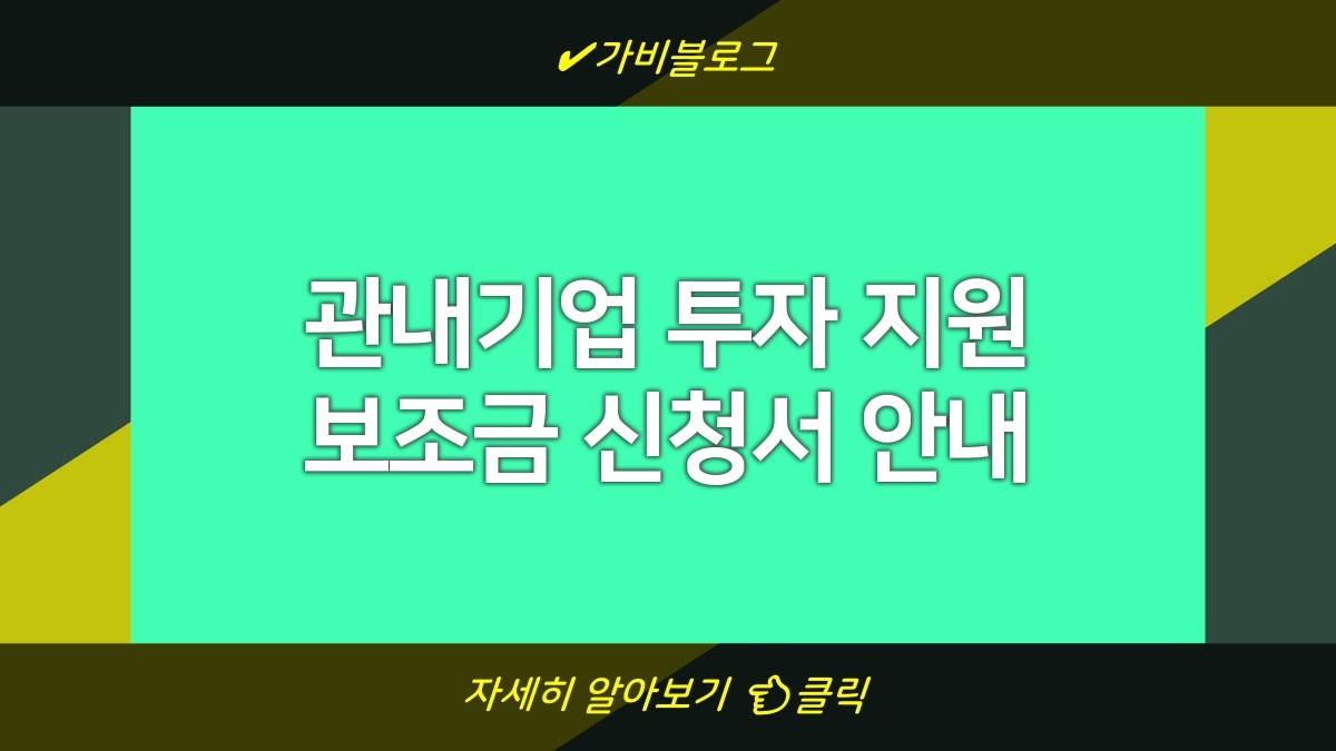 관내기업 투자 지원 보조금은 기업들이 더 나은 방향으로 성장할 수 있도록 도와주는 중요한 자원이야. 이를 통해 많은 기업들이 성장 기회를 얻고 지역 경제도 활성화될 수 있음. 필요한 정보와 절차들을 잘 알고 있는 것이 성공적인 신청의 열쇠임. 신청을 원하는 기업들은 필요한 서류들을 잘 준비해서 기회를 놓치지 말라고 조언하고 싶어. 잘 준비하면 좋은 결과가 있을 거야.