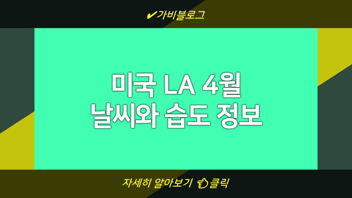LA의 4월 날씨는 보통 온화하고 쾌적함. 낮에는 온도가 올라가지만 밤은 선선하니 옷차림 잘 고려해야 함. 햇살이 강해서 자외선 차단제 바르는 것도 잊지 말고, 해변 갈 계획이 있다면 수영복 챙기는 것도 좋음. 습도는 대체로 낮고 쾌적하니 산책하기에도 딱 좋음. 언제든지 날씨 확인할 수 있는 사이트 이용하면 좋겠음. 실시간으로 온도와 습도를 확인할 수 있으니까 활용해보길 바람.