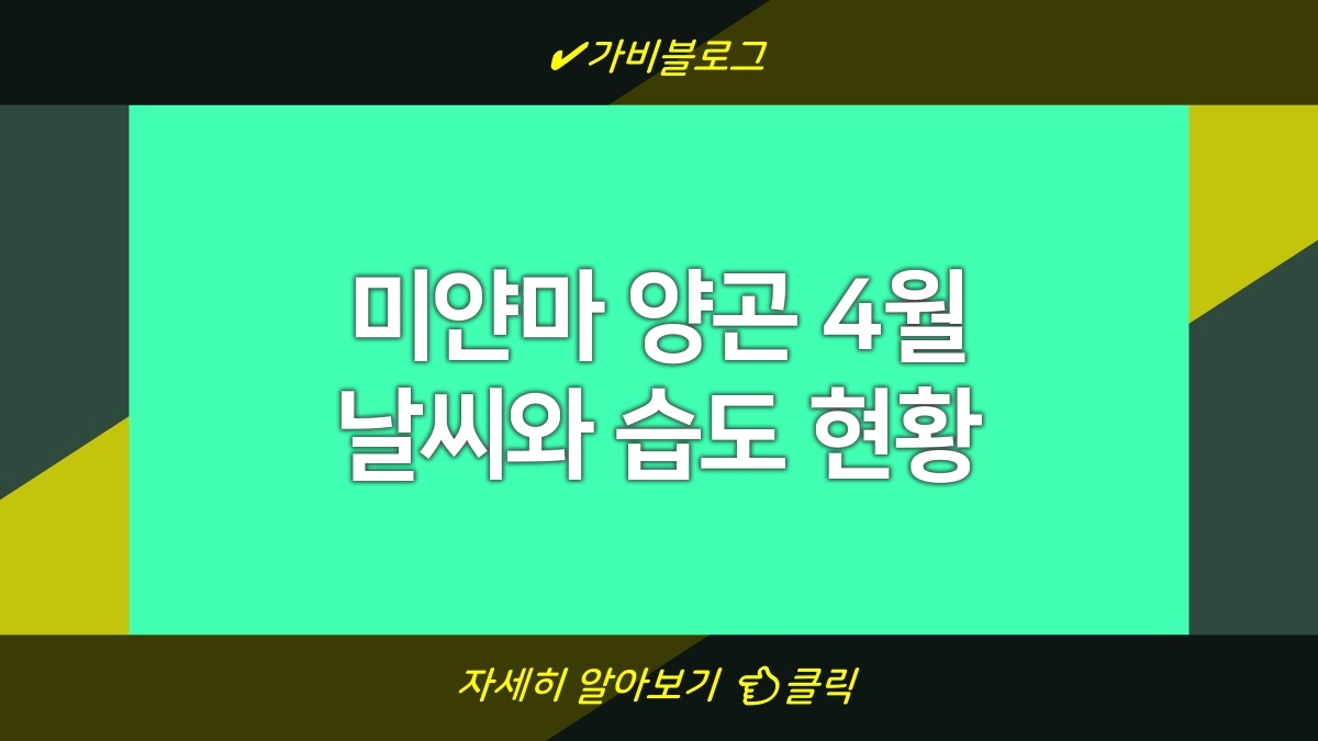 미얀마 양곤의 4월 날씨가 궁금한 사람 많을 걸? 양곤은 4월에 정말 더워지는 편임. 기온이 올라가고 습도도 높아져서 체감 온도가 더 올라가. 그러니까 여행 가거나 출장을 간다면 대비가 필요함. 실시간 날씨 정보는 [여기](https://search.naver.com/search.naver?where=nexearch&sm=top_hty&fbm=0&ie=utf8&query=미얀마%20양곤%20날씨)에서 확인하면 돼. 내가 추천하는 옷차림도 아래에 쓸 테니 참고해 봐.