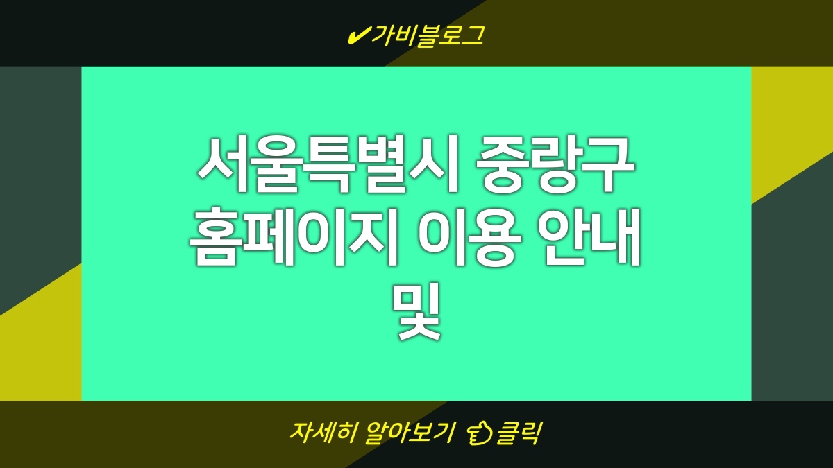 서울특별시 중랑구는 여러 가지 정보를 제공하는 웹사이트를 운영함. 이곳에서는 종합민원, 구민 참여, 복지 교육, 생활 경제, 문화 체육, 그리고 행정 정보 등을 손쉽게 찾을 수 있음. 홈페이지에 접속하면 필요한 정보를 빠르게 확인할 수 있어서 많은 도움이 될 것임. 자세한 사항은 중랑구 공식 홈페이지를 방문하면 되지.