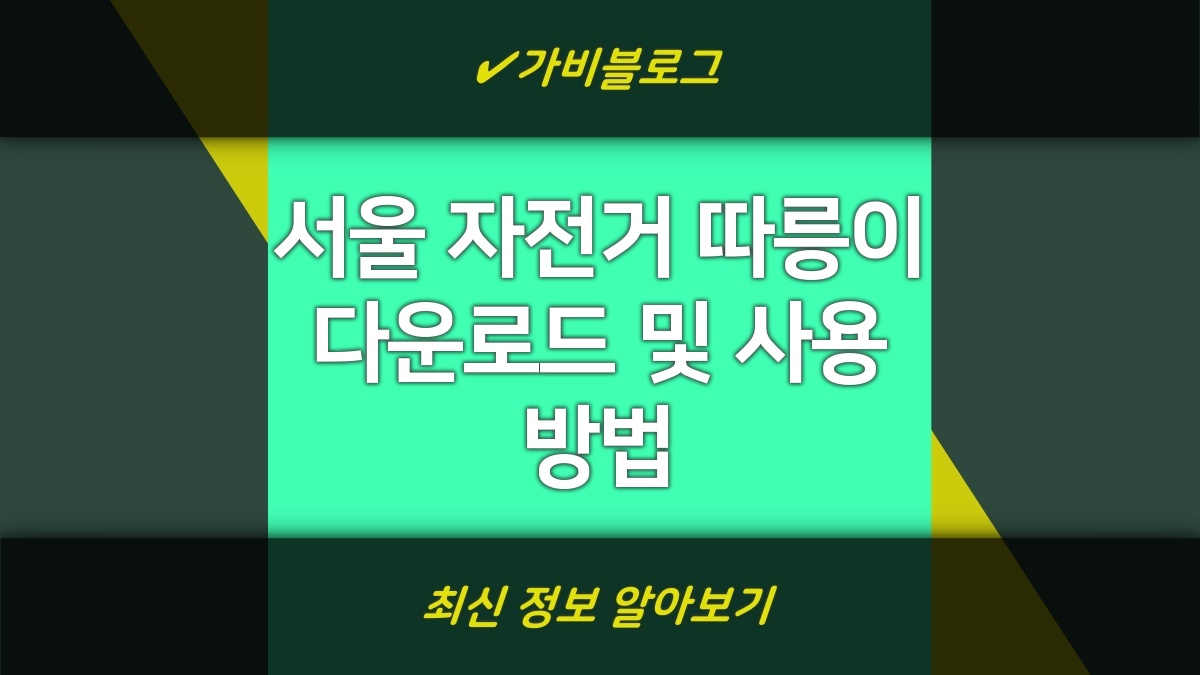서울 자전거 따릉이는 어떻게 이용하나요?