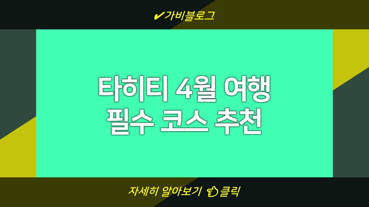 타히티는 진정한 천국 같은 섬으로, 4월에는 따뜻한 날씨와 아름다운 경치를 만끽할 수 있어. 다양한 관광명소와 액티비티가 있어 여행 전에 어떤 곳을 가야 할지 고민될 거야. 특히, 바닷가에서 할 수 있는 다양한 활동이나 아름다운 자연을 느낄 수 있는 장소들이 많아서 특별한 경험을 할 수 있을 거야. 다만 미리 준비할 것들도 있으니 참고하면 좋을 것 같아. 여행 계획 세우면서 체크해보자!