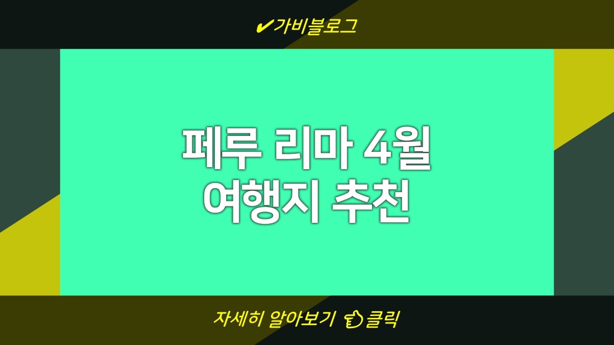 4월의 페루 리마는 여행하기 딱 좋은 시기야. 기온도 적당하고, 다양한 행사가 열리기 때문에 관광하기 너무 좋아. 리마의 대표적인 장소들로는 역사적인 구시가지, 아름다운 해변, 다양한 박물관이 있어. 식도락 또한 빼놓을 수 없지. 리마에 가면 꼭 먹어봐야 할 음식들이 넘쳐나니까. 준비물은 간편하게 챙기면 돼. 적당한 옷과 함께 카메라는 필수야. 멋진 순간을 담아야하니까. 또한, 여행 전에 일정 잘 짜두면 좋아. 요즘 리마에서 할 수 있는 다양한 액티비티가 많아서 무궁무진해. 이렇게 준비 잘해서 가면 즐거운 여행이 될 거야. 기대해봐!